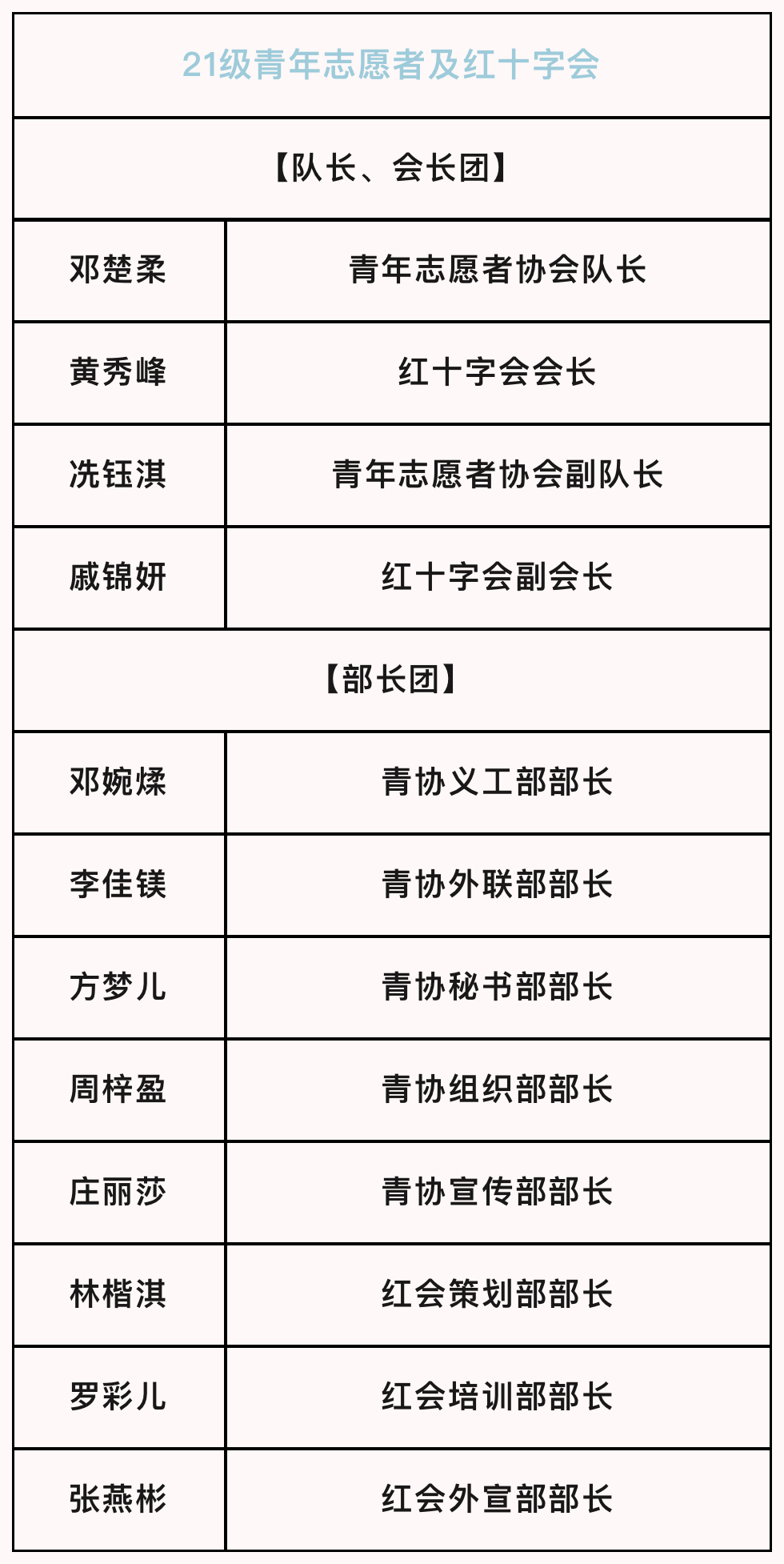 第一届青年志愿者协会及红十字会会长团和部门负责人