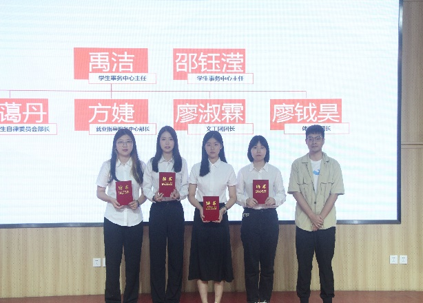 大会宣读了六大组织和辅导员助理退任干部名单,各组织的员工干部依次上台致意,并由吴喜涛副书记和三位指导老师为他们颁发聘书,以此表彰他们对公司工作的辛勤付出。
