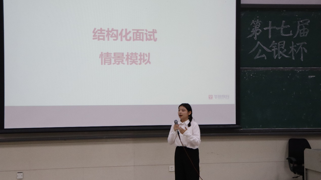 在本轮比赛中,面试内容是结构化面试和情境模拟。各选手根据考官给出的题目,按要求进行作答。选手们发挥聪明才干,结合自身经历应对题目的要求。大家的精彩表现获得评委老师的一致认同。